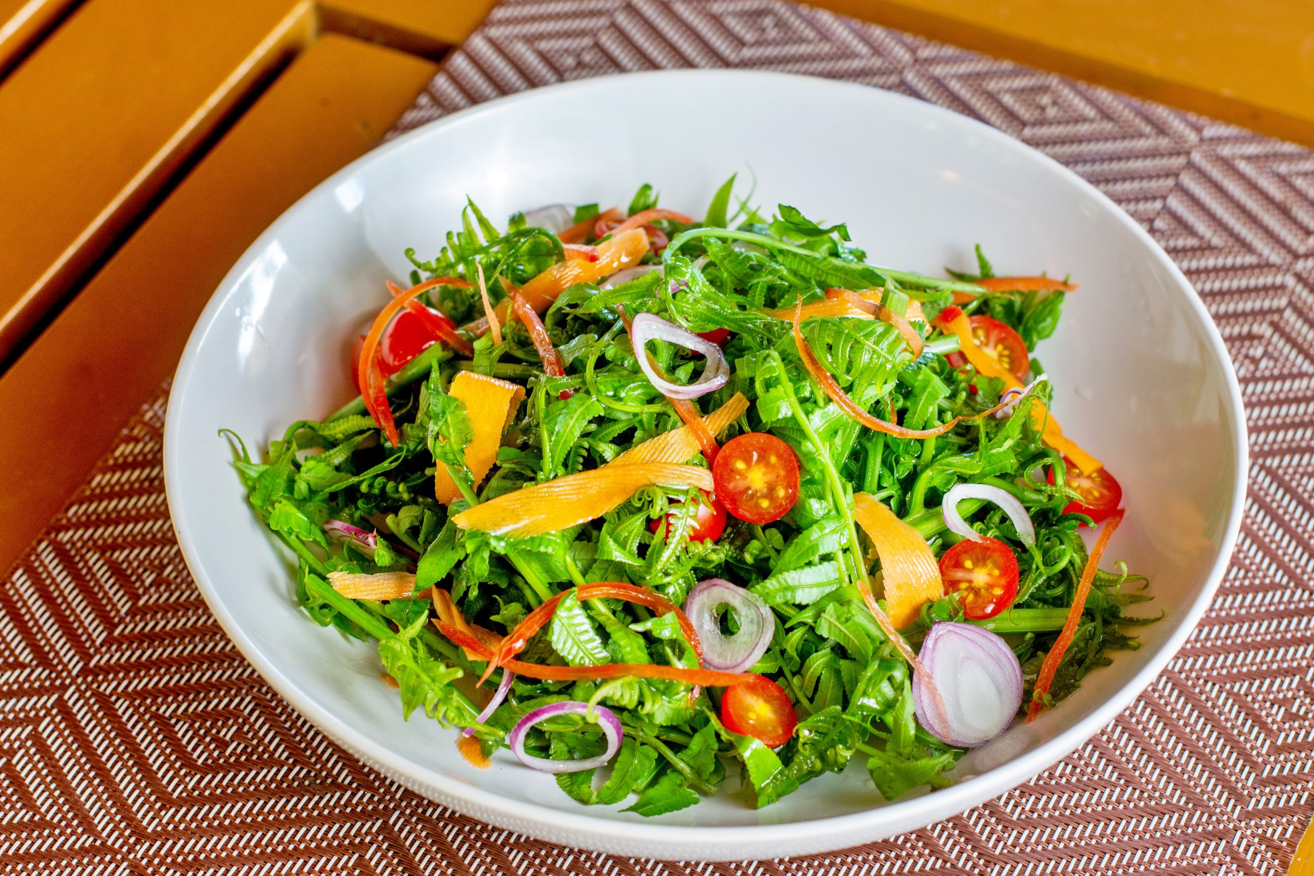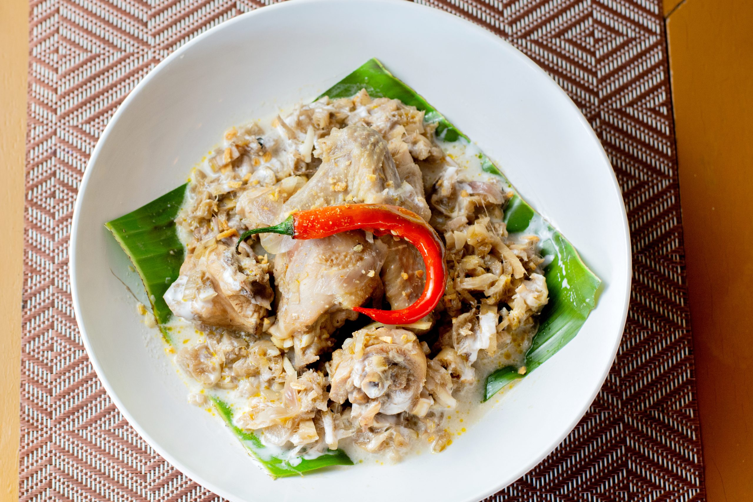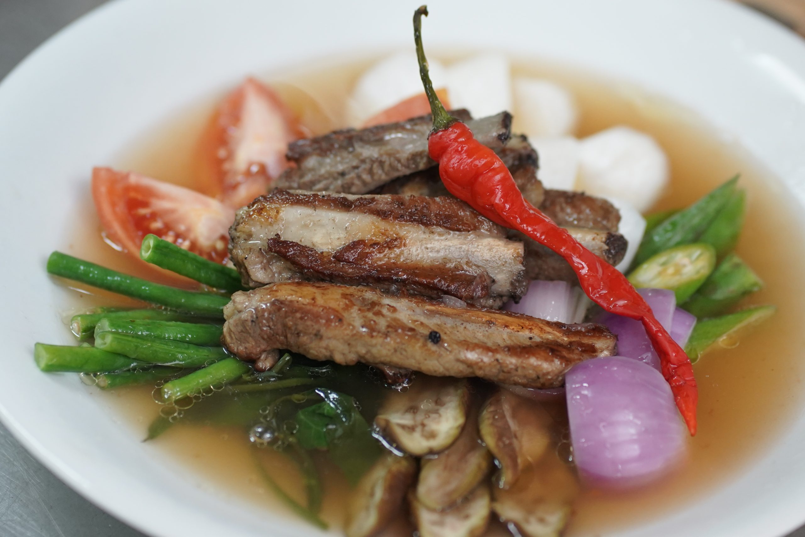 Tender chunks of beef belly, crisp greens, and jackfruit in 'batuan' paste