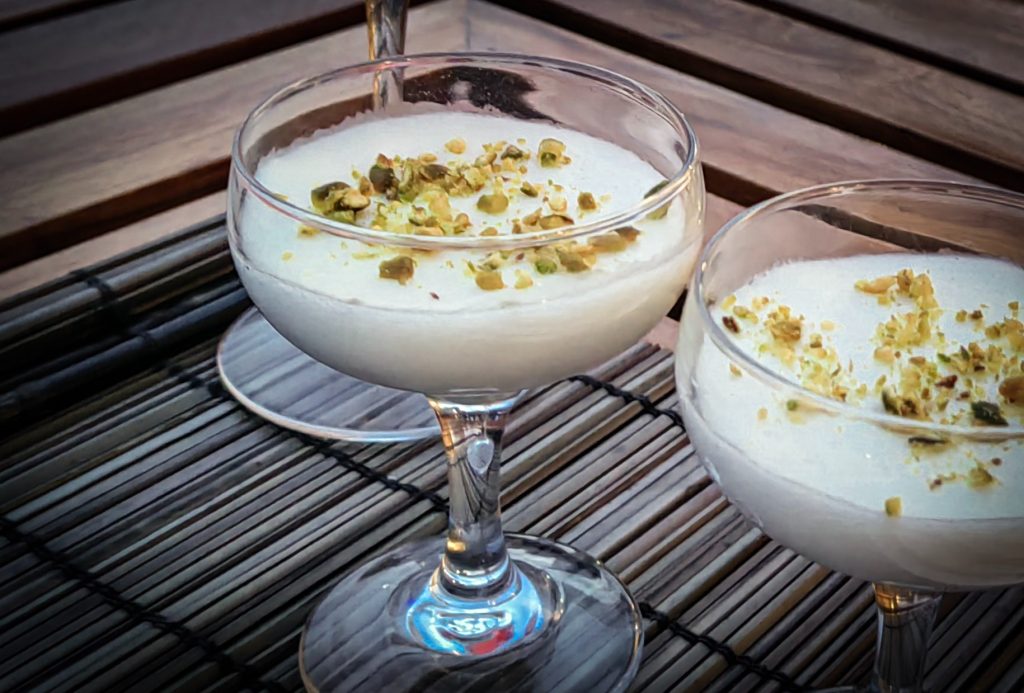 A silky milk pudding infused with cardamom and finished with roasted pistachios.